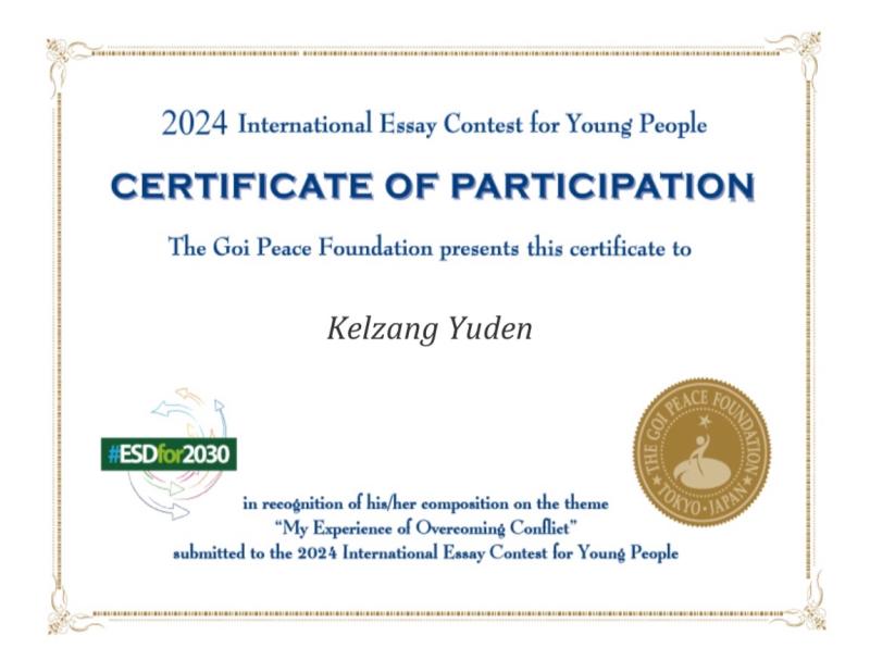 Contributed to the international essay competition organized by the Goi Peace Foundation under the theme "My Experience of Overcoming Conflict," reflecting on personal growth, empathy, and resolution through thoughtful writing.